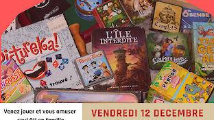 Le prochain vendredi des jeux se déroulera vendredi 12 décembre de 16h30 à 20h à la bibliothèque de Drumettaz-Clarafond. Venez vous amuser seul ou en famille! Ce moment convivial est gratuit et ouvert à tous.