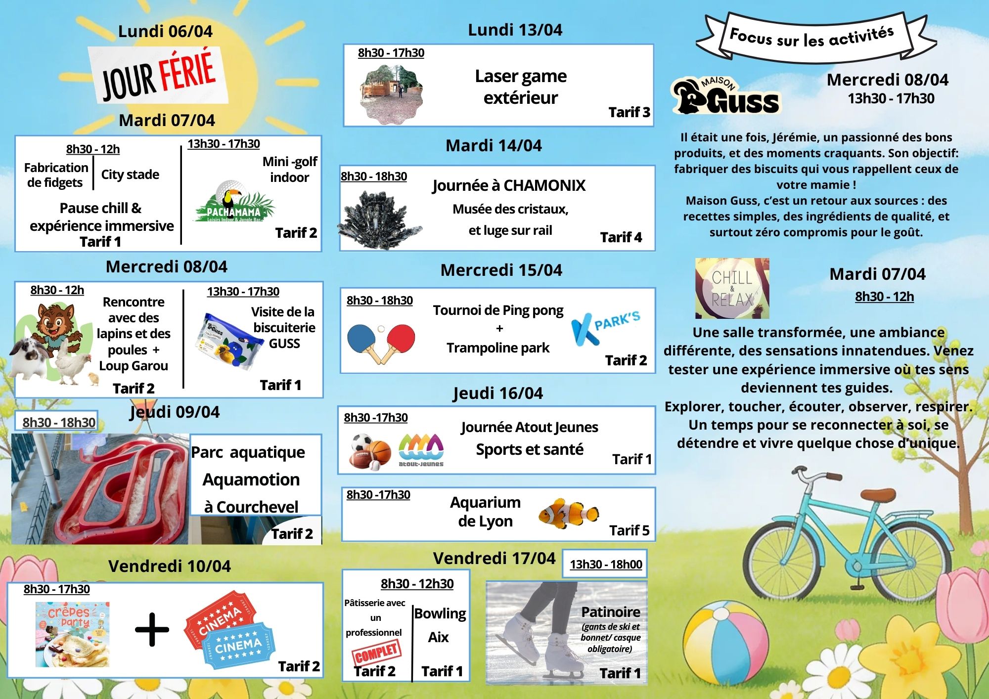 Durant les vacances scolaires un programme d'activité est diffusé via le portail famille et distribué aux collégiens du collège Marlioz.