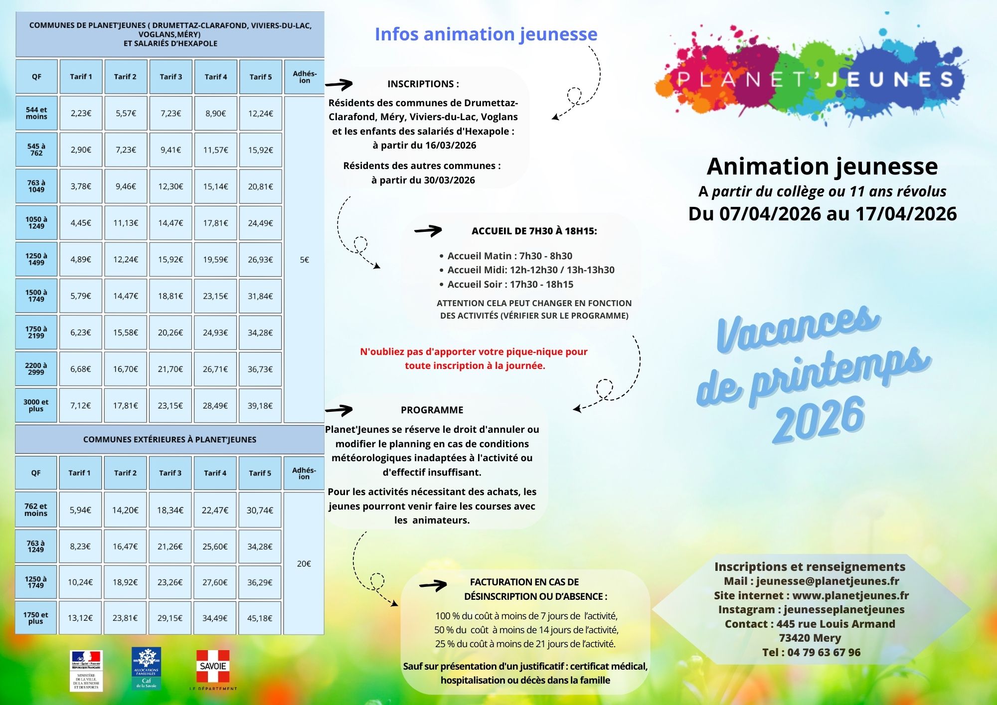 L'accueil se fait à Planet Jeunes, 445 rue Louis Armand 73 420 Mery du lundi au vendredi de 7h30 à 18h15.